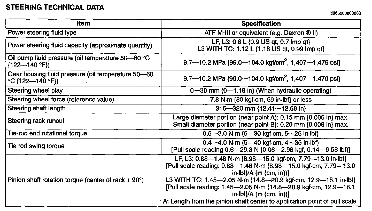 Steering Technical Data: