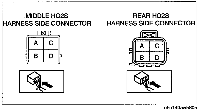 - Middle/rear HO2S terminal D and power supply