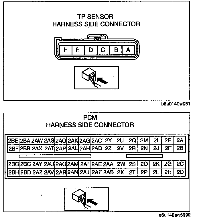 - Throttle body terminal B and PCM terminal 2A0