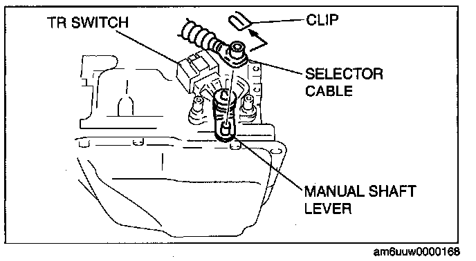 14. Connect the selector cable to the manual shaft lever as shown in the figure.
