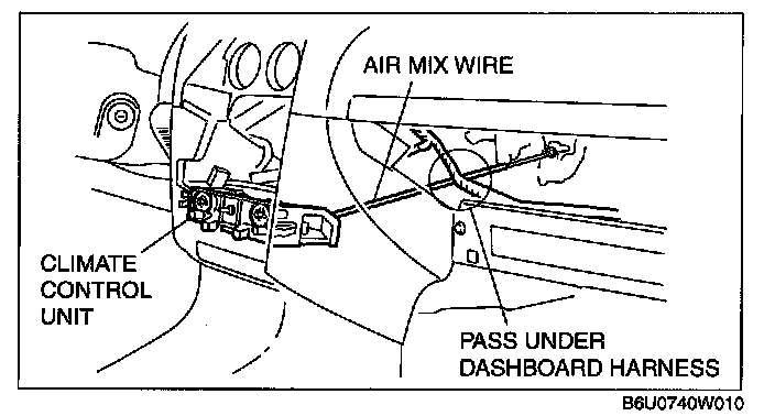 1. Pass air mix wire through the following routes then connect to A/C unit. (Manual air conditioner)