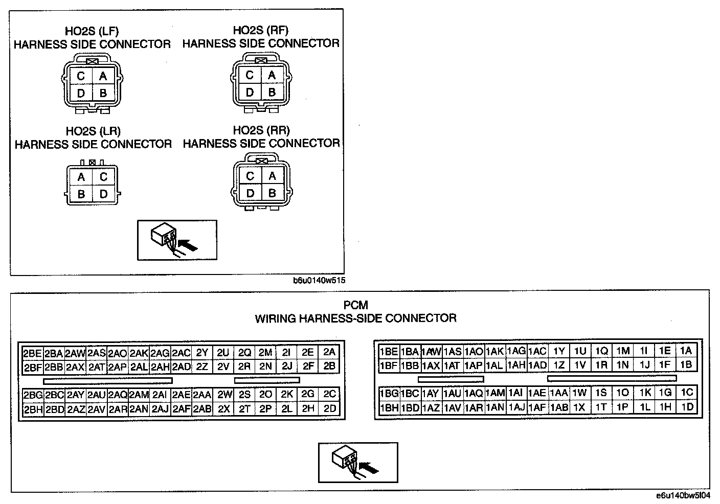- HO2S (LR) terminal B and PCM terminal 2BA