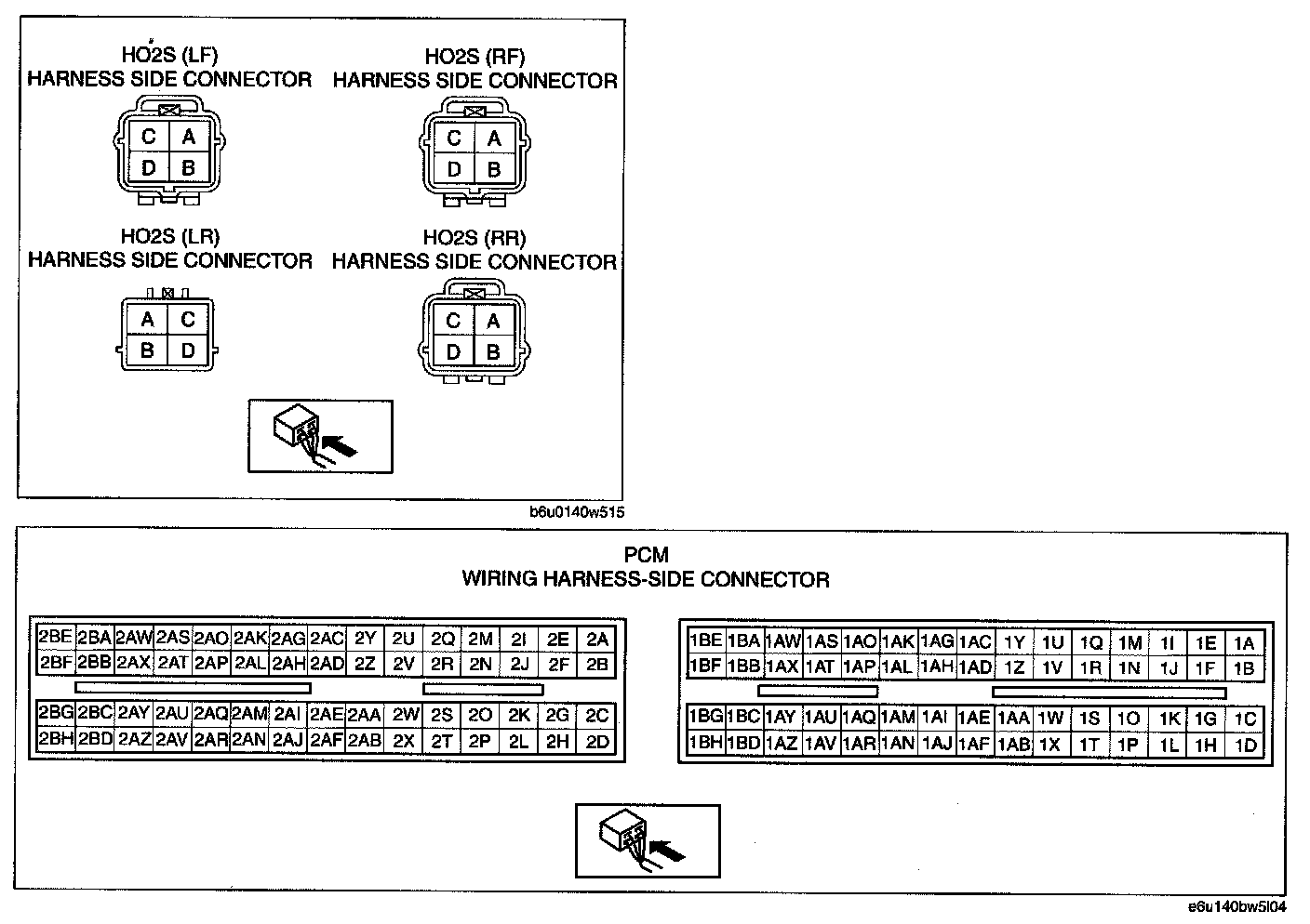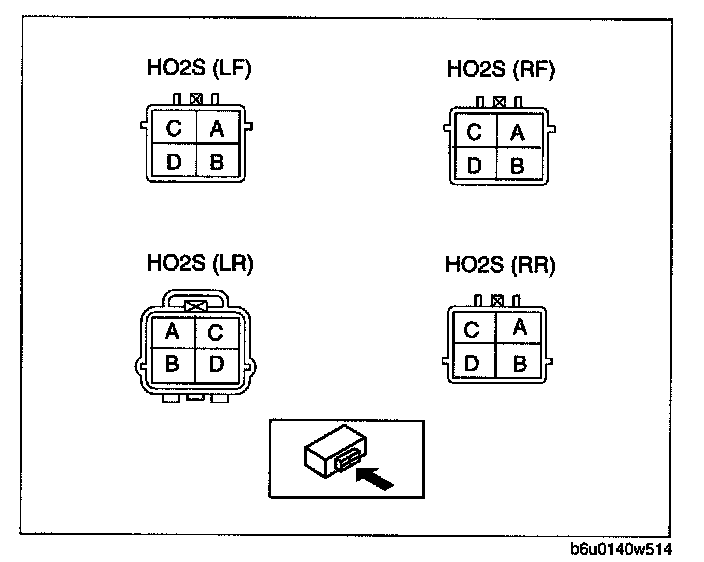 - HO2S (LR) terminal D and PCM terminal 2A0