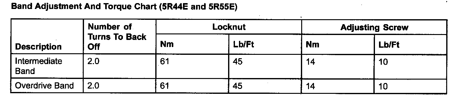 Band Adjustment And Torque Chart (5R44E and 5R55E)