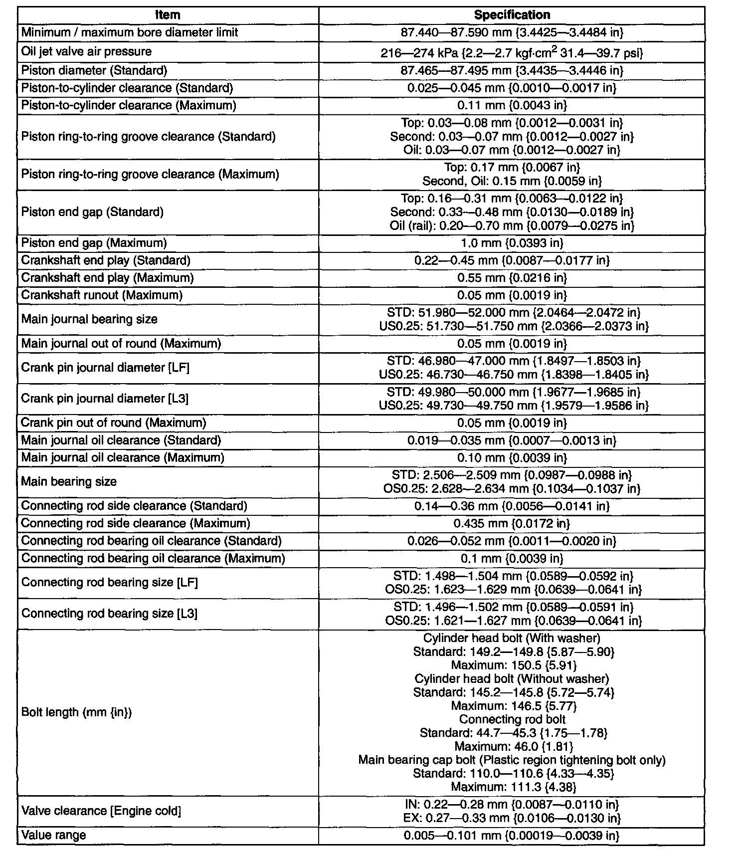 Engine Technical Data (Overhaul)