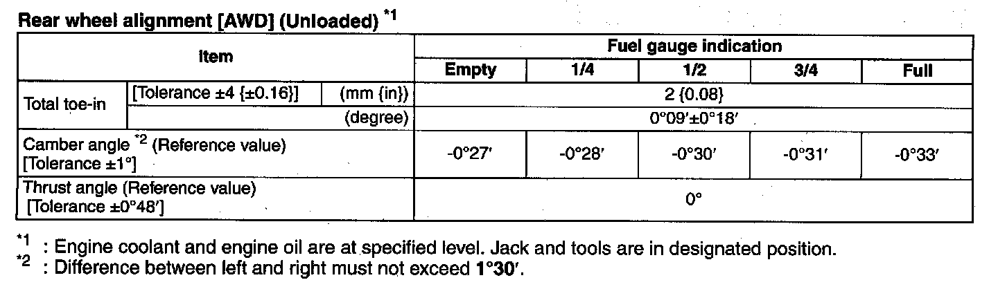Rear Wheel Alignment [AWD] (Unloaded) *1