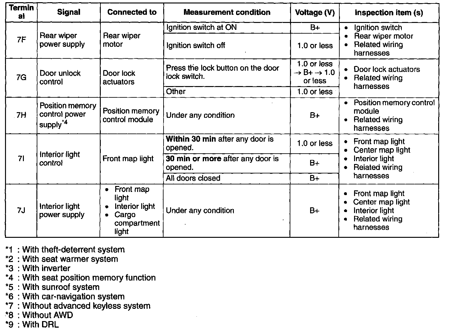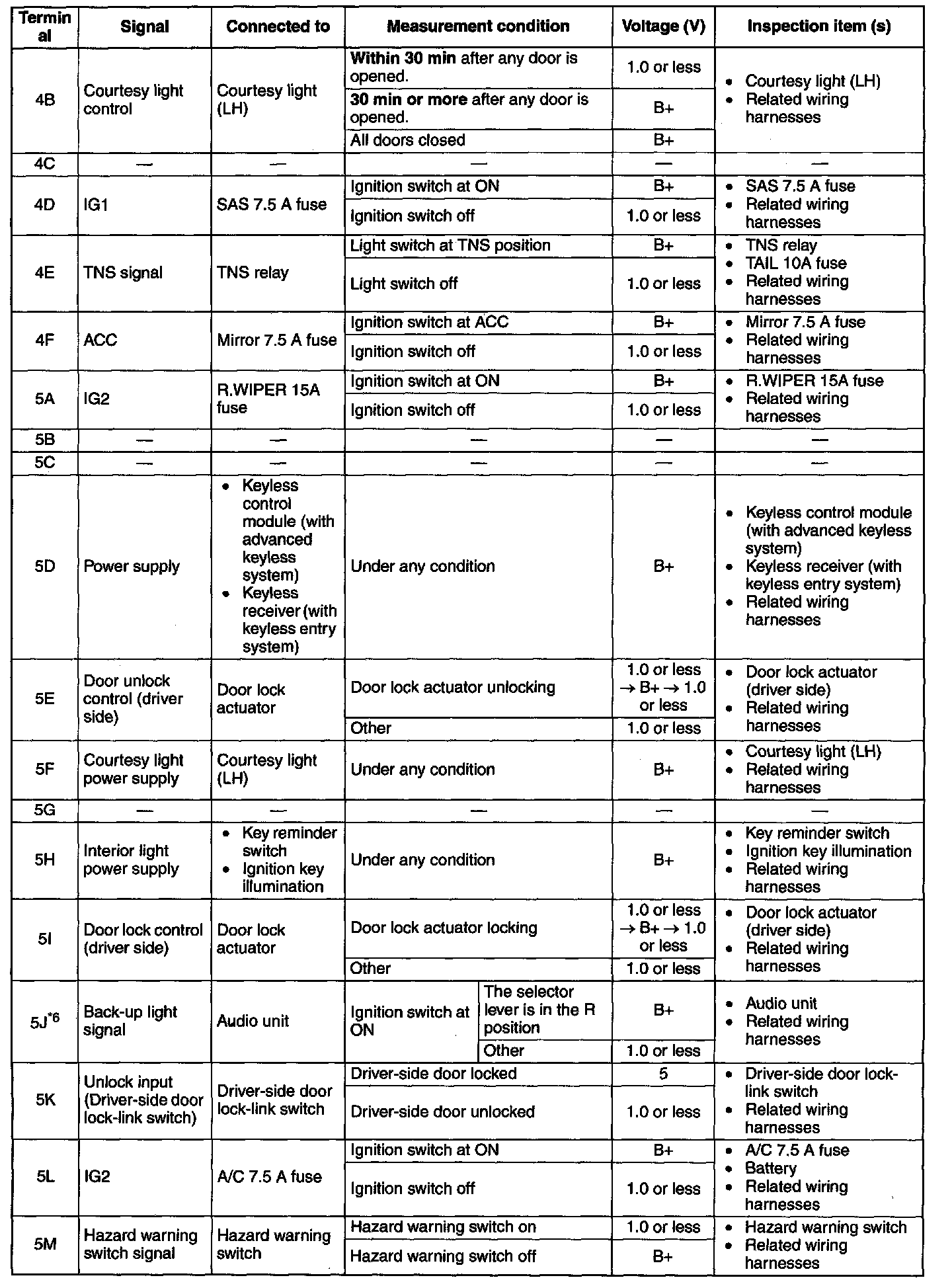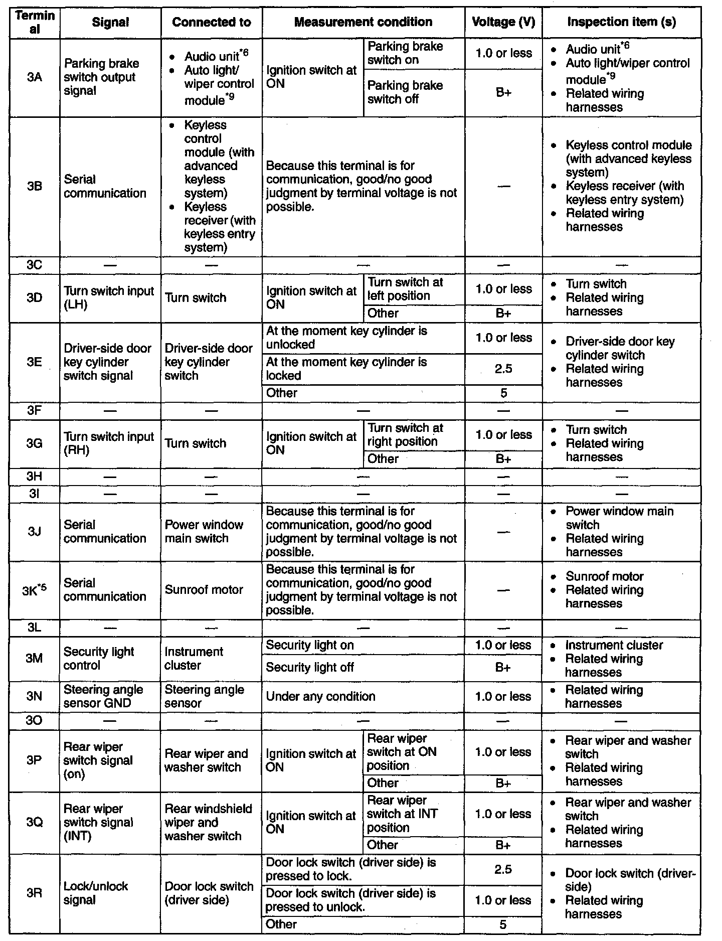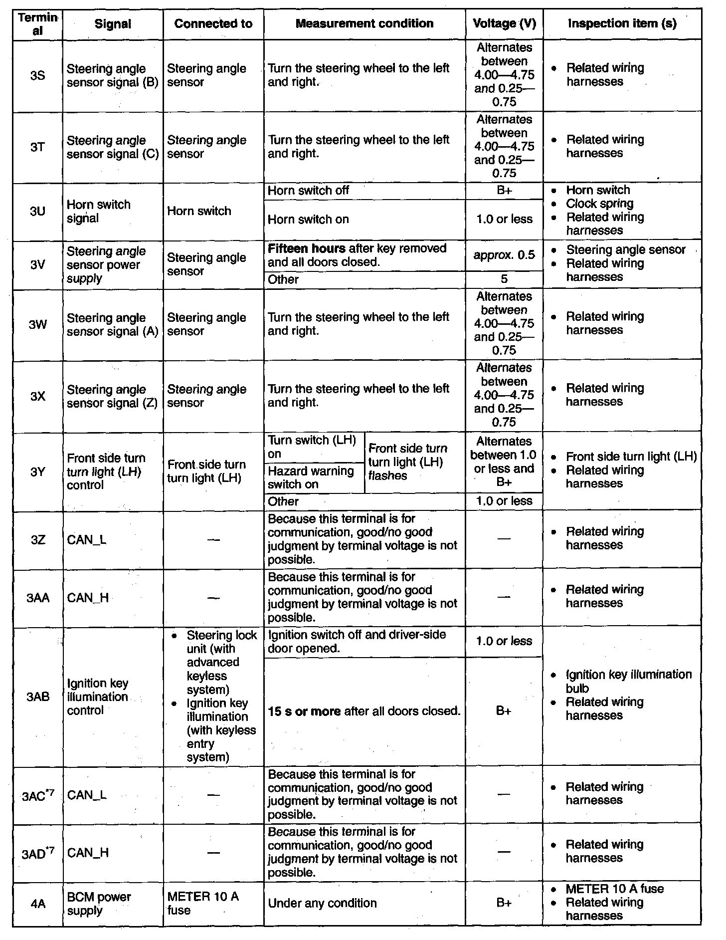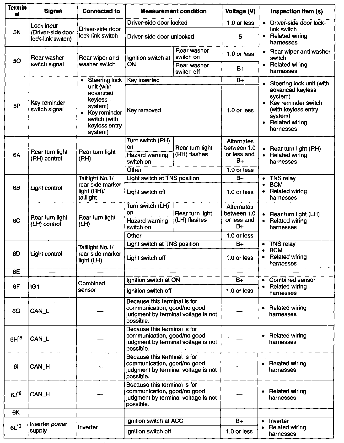 Terminal Voltage Table (Reference)Terminal Voltage Table (Reference) (Part 1):
