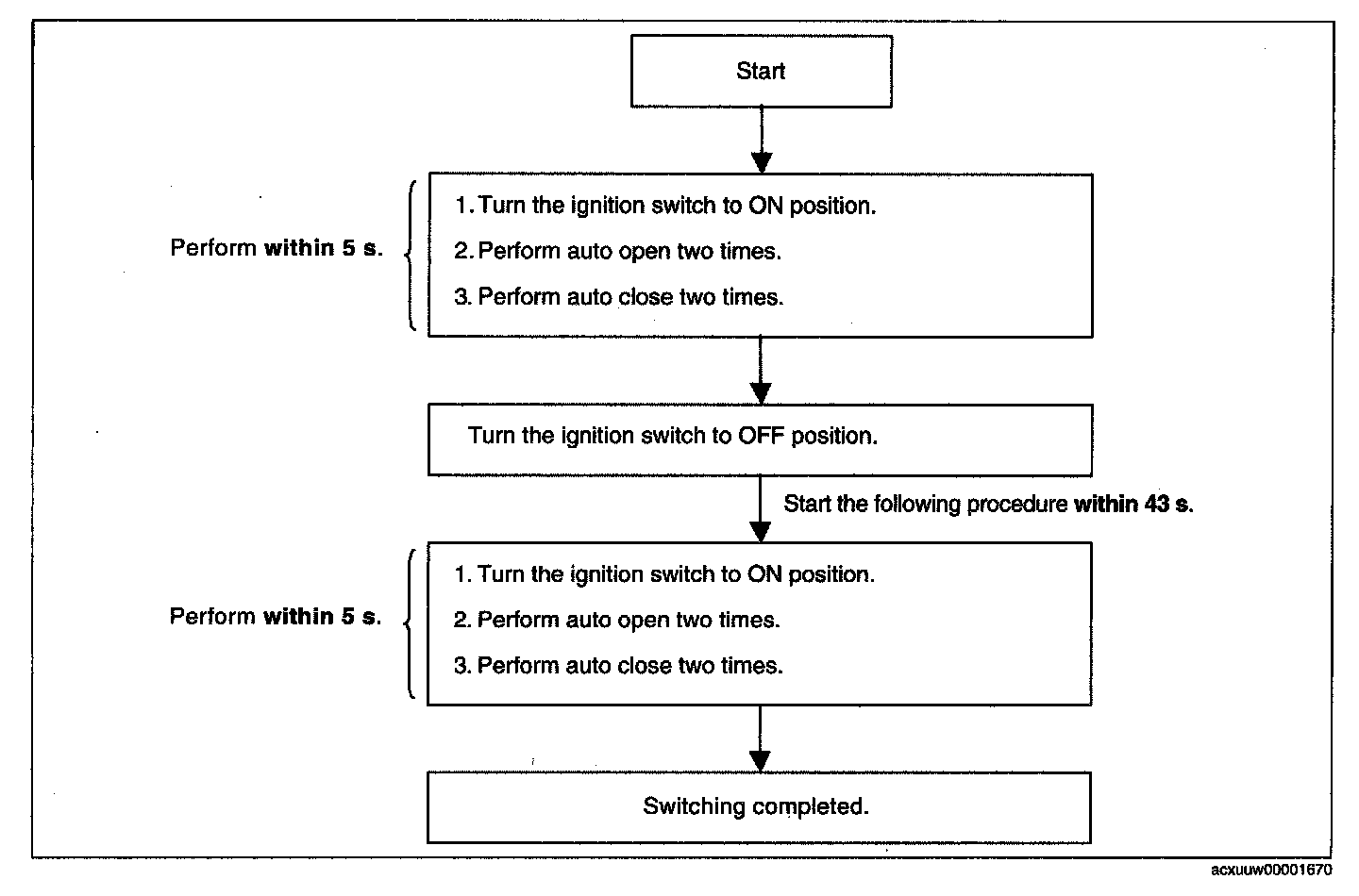 Home >> Mazda >> 2008 >> CX-9 AWD V6-3.7L >> Repair and Diagnosis >> Windows and Glass >> Windows >> Power Window Switch >> Testing and Inspection >> Two-Step Down Function Operative/Non-Operative Switching Procedure