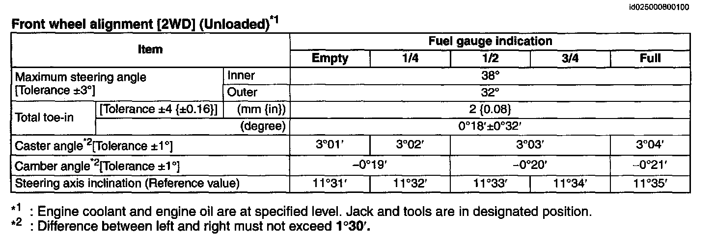 Front Wheel Alignment [2WD] (Unloaded) *1