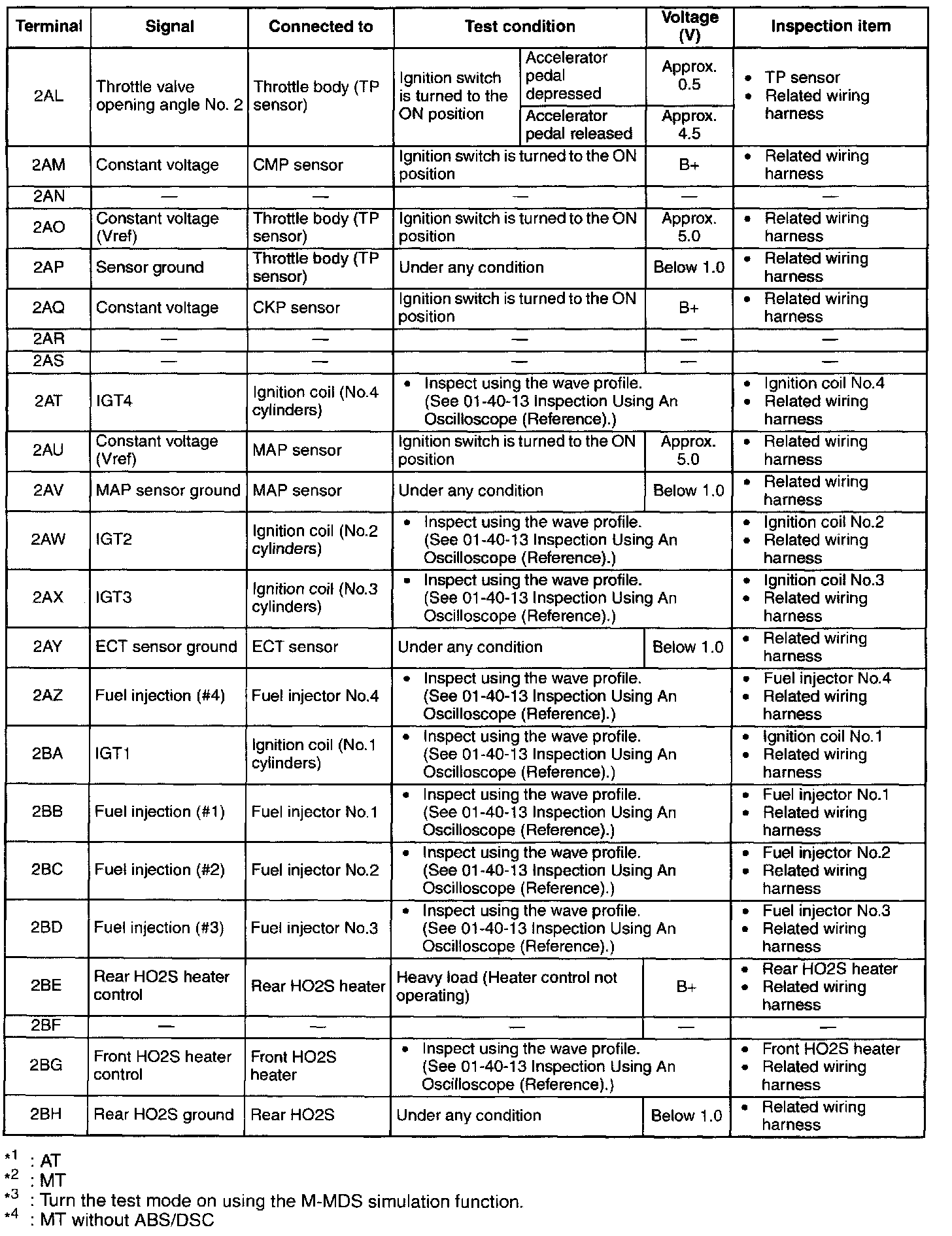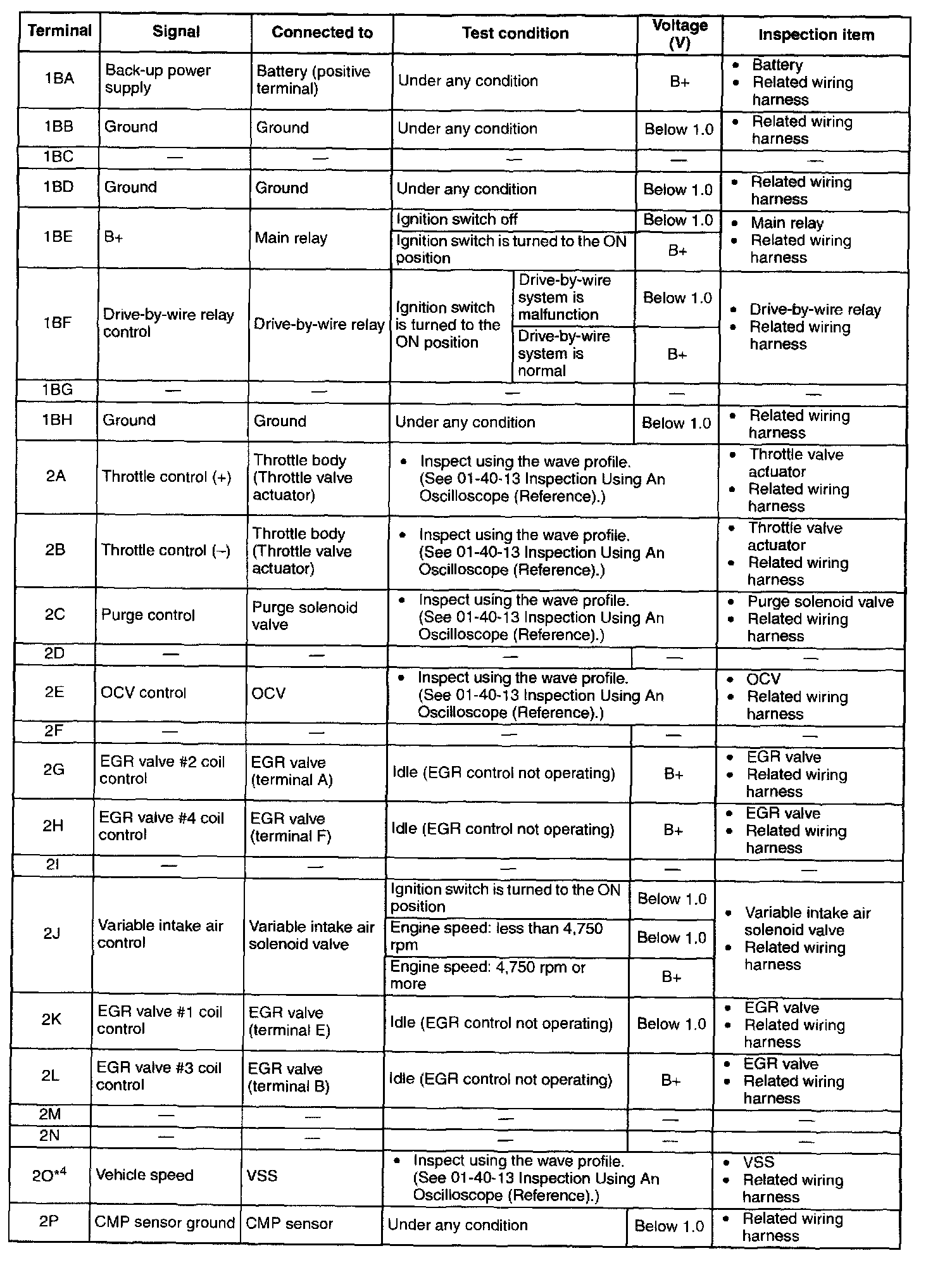 Pinout Values and Diagnostic Parameters