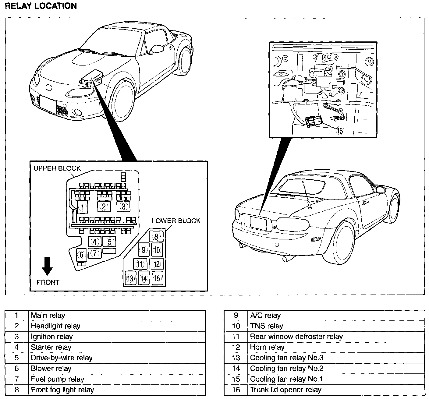 Main Relay (Computer/Fuel System): Locations