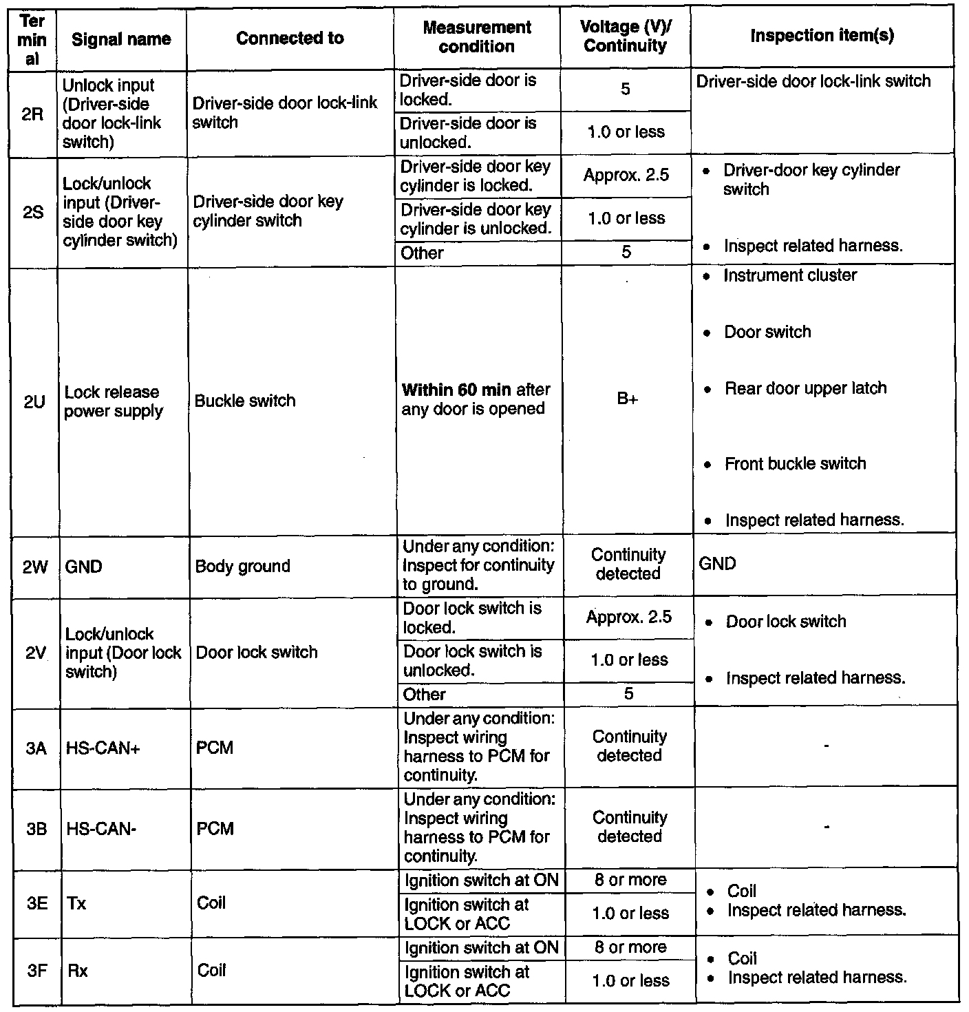 Terminal Voltage Table (Reference) (Part-2):