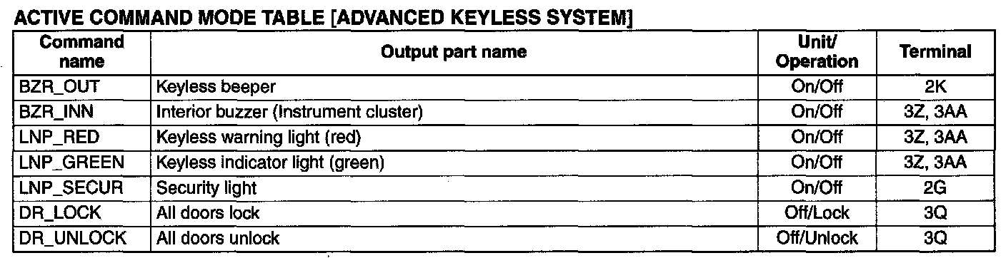 Active Command Mode Table [Advanced Keyless System]: