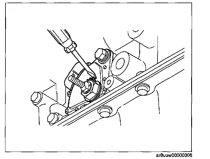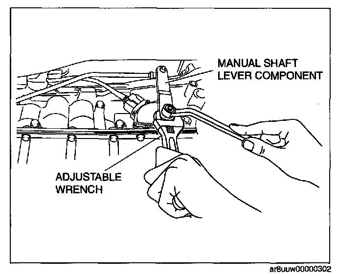 26. Set the adjustable wrench as shown in the figure to hold the manual shaft lever.