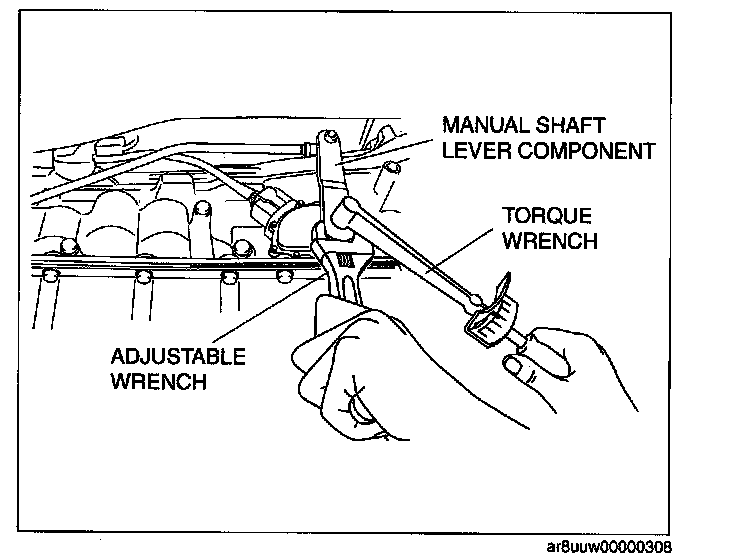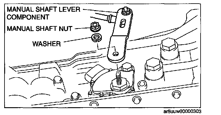 ^ Do not use an impact wrench. Hold the manual shaft lever when removing the manual shaft nut, otherwise the transmission may be damaged.
