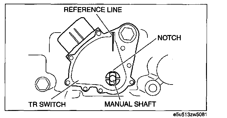 20. Verify the TR switch reference line and the notch of the manual shaft are aligned.