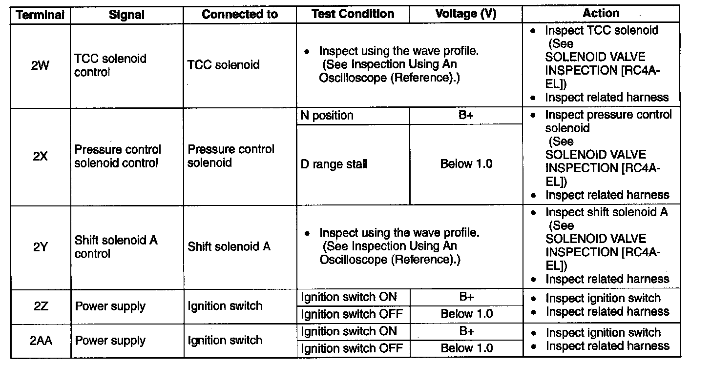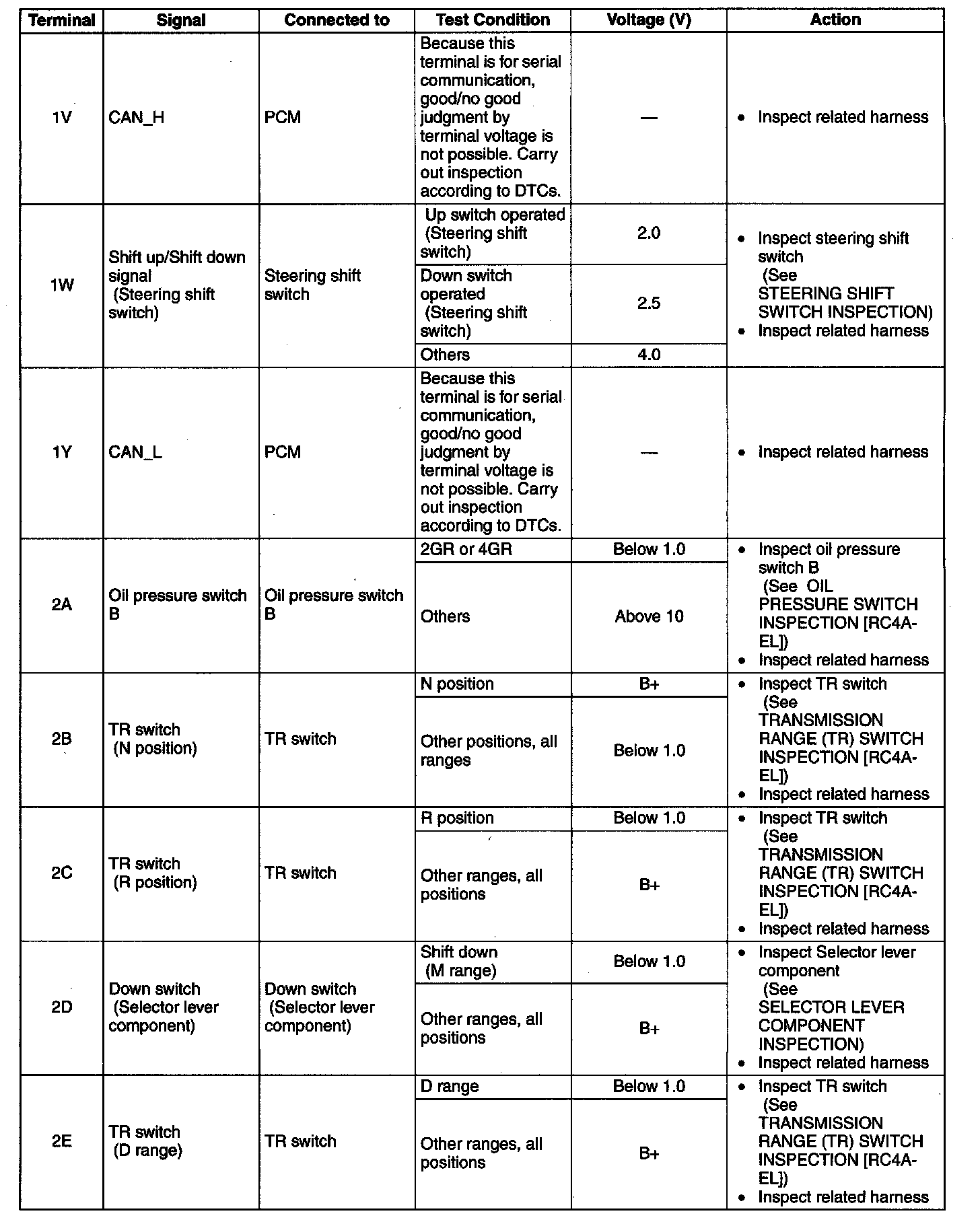 TCM INSPECTION [RC4A-EL]Terminal Voltage Table (Reference)