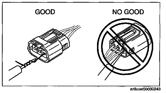 CAUTION: To prevent damage to the terminal, wrap a thin wire around the tester probe before inserting into terminal.