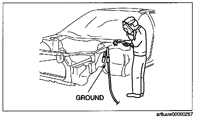 A vehicle has various electrical parts. To protect the parts from excessive current generated when welding, be sure to perform the following procedure.
