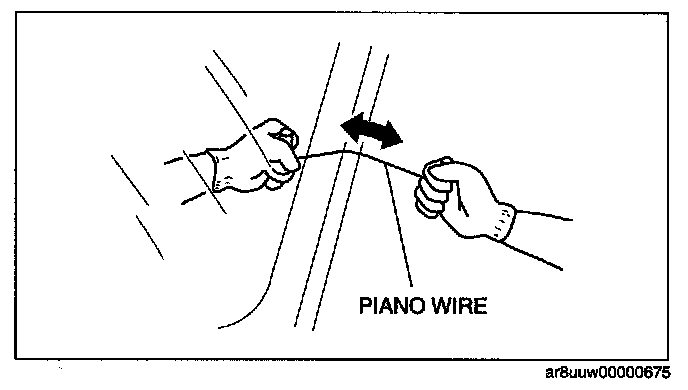 4. Fix one end of the piano wire, and while pulling the other end, cut the sealant around the rear window glass.