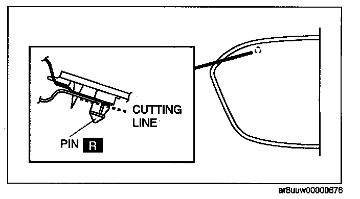 1. Make a hole through the sealant from the inside of the vehicle using an awl, avoiding the pins.