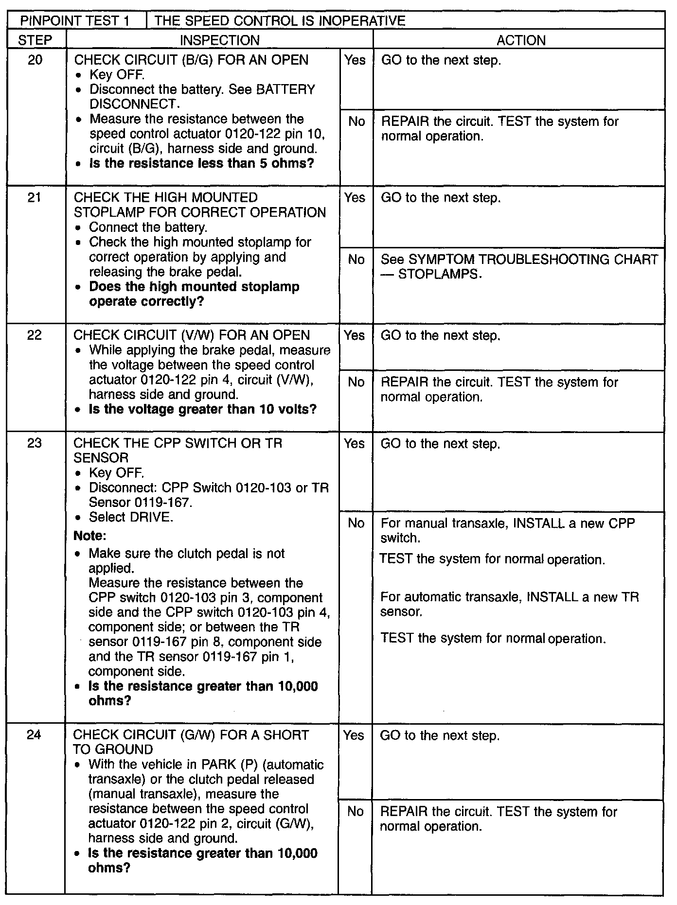 Pinpoint Test 1: The Speed Control Is Inoperative