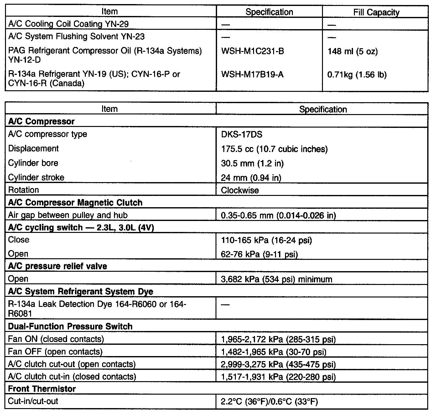 Capacity Specifications