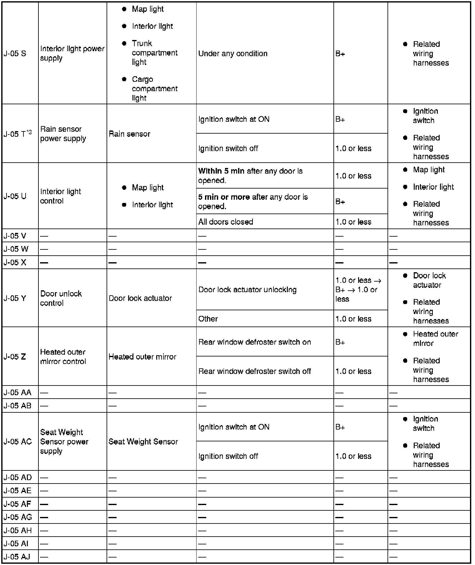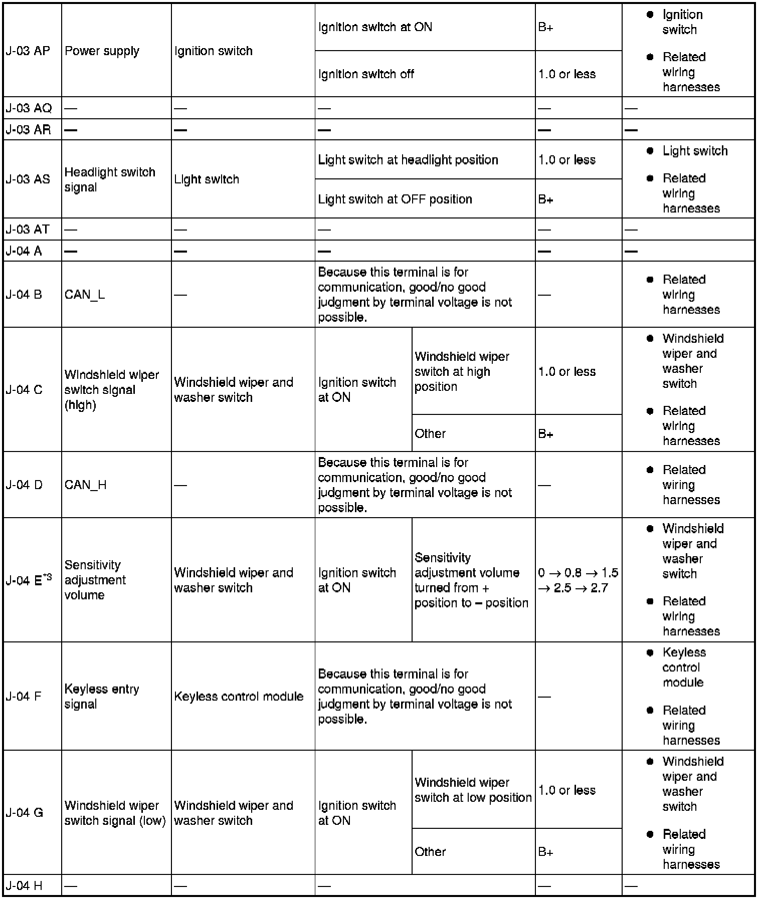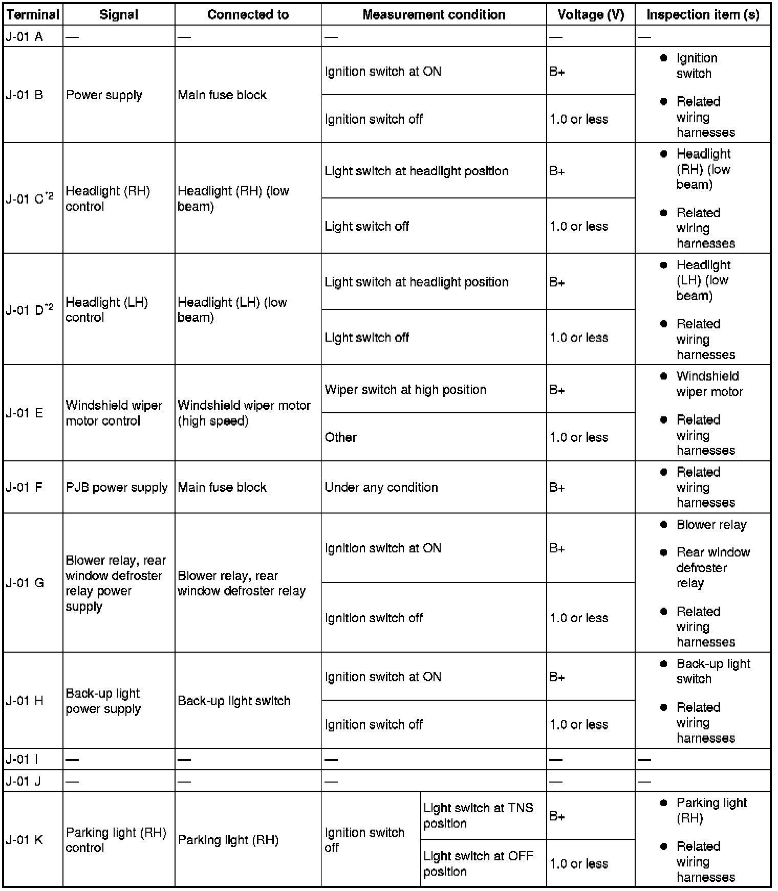 Home >> Mazda >> 2009 >> 3 L4-2.0L >> Repair and Diagnosis >> Body and Frame >> Body Control Systems >> Body Control Module >> Testing and Inspection >> Pinout Values and Diagnostic Parameters