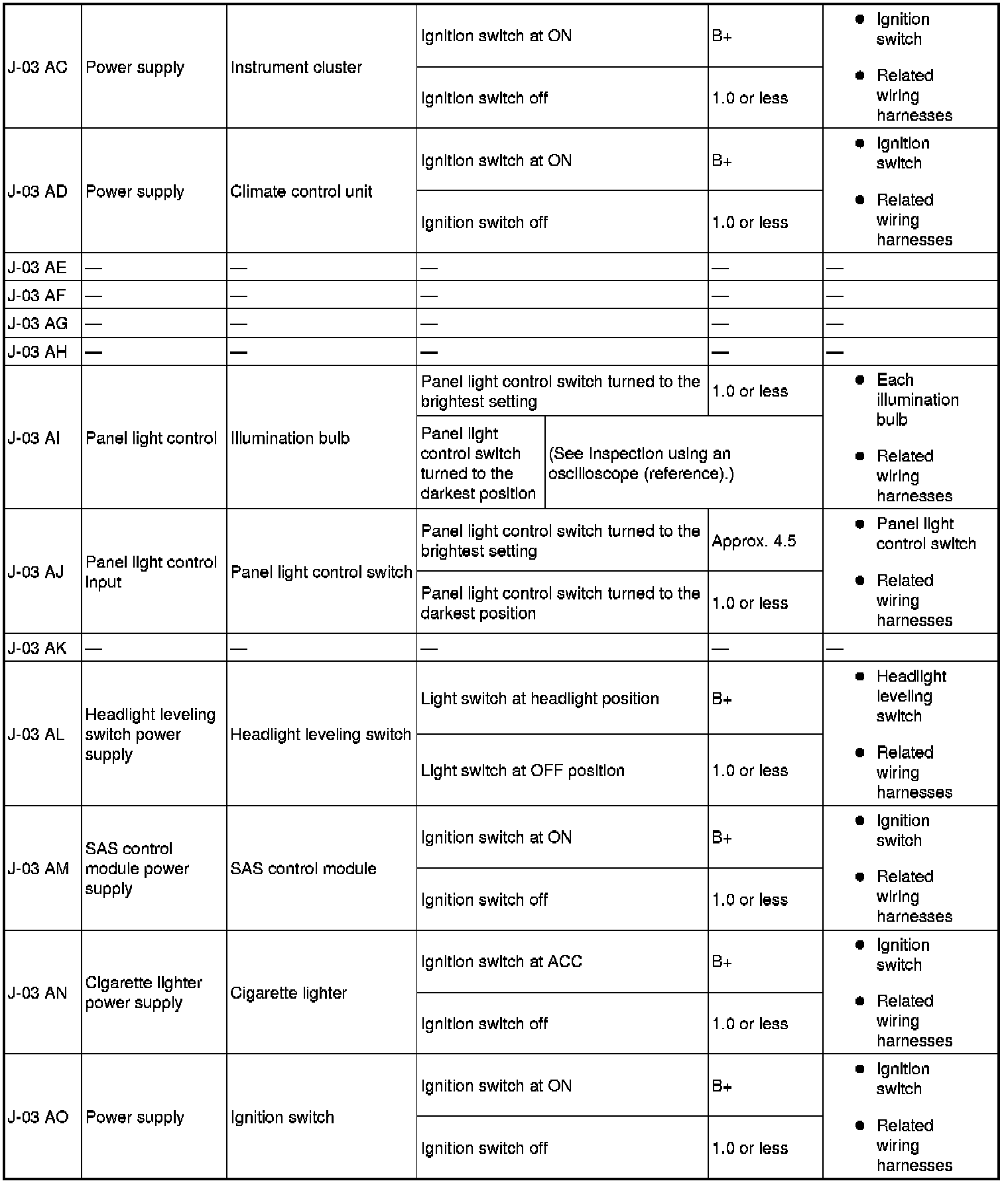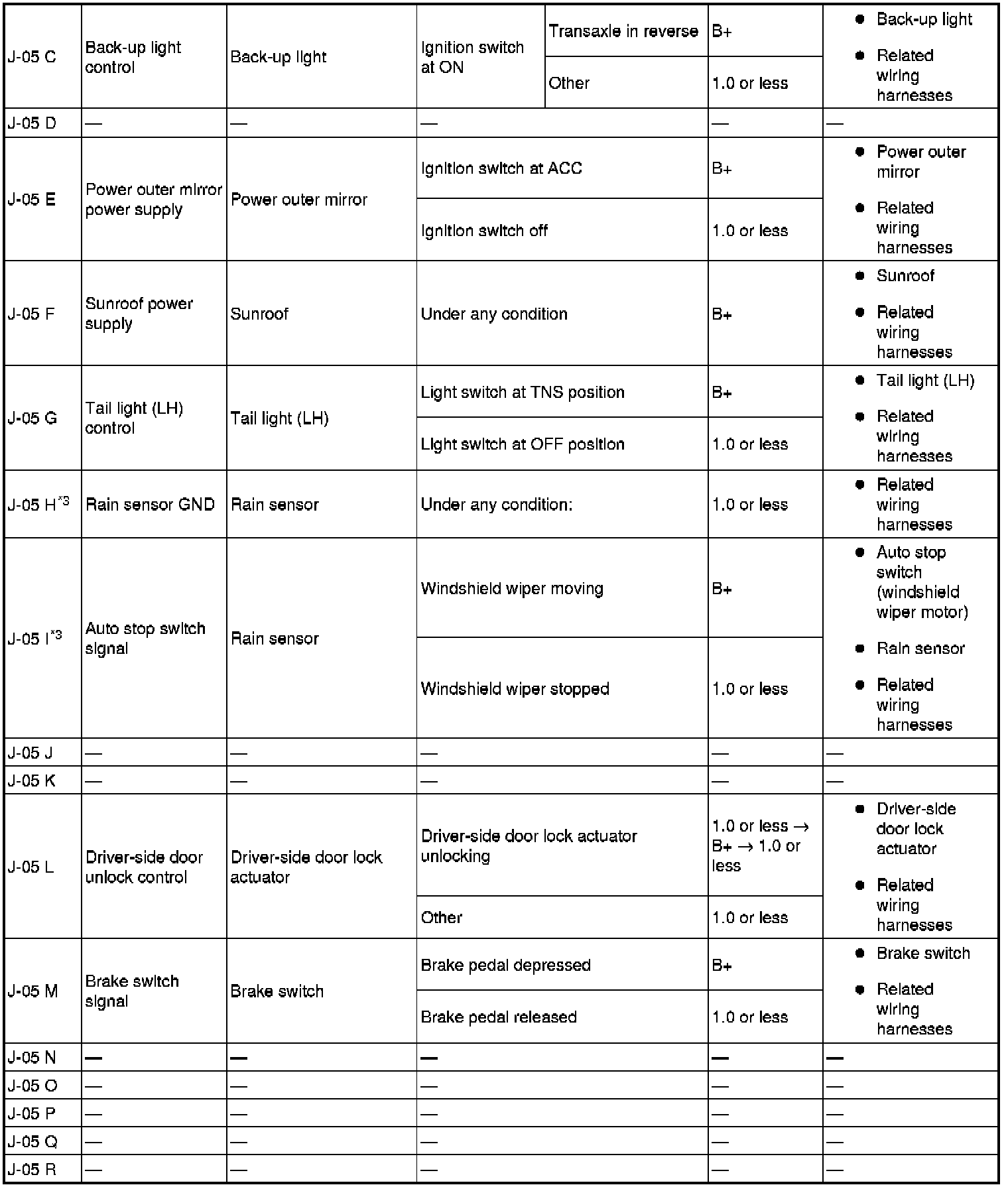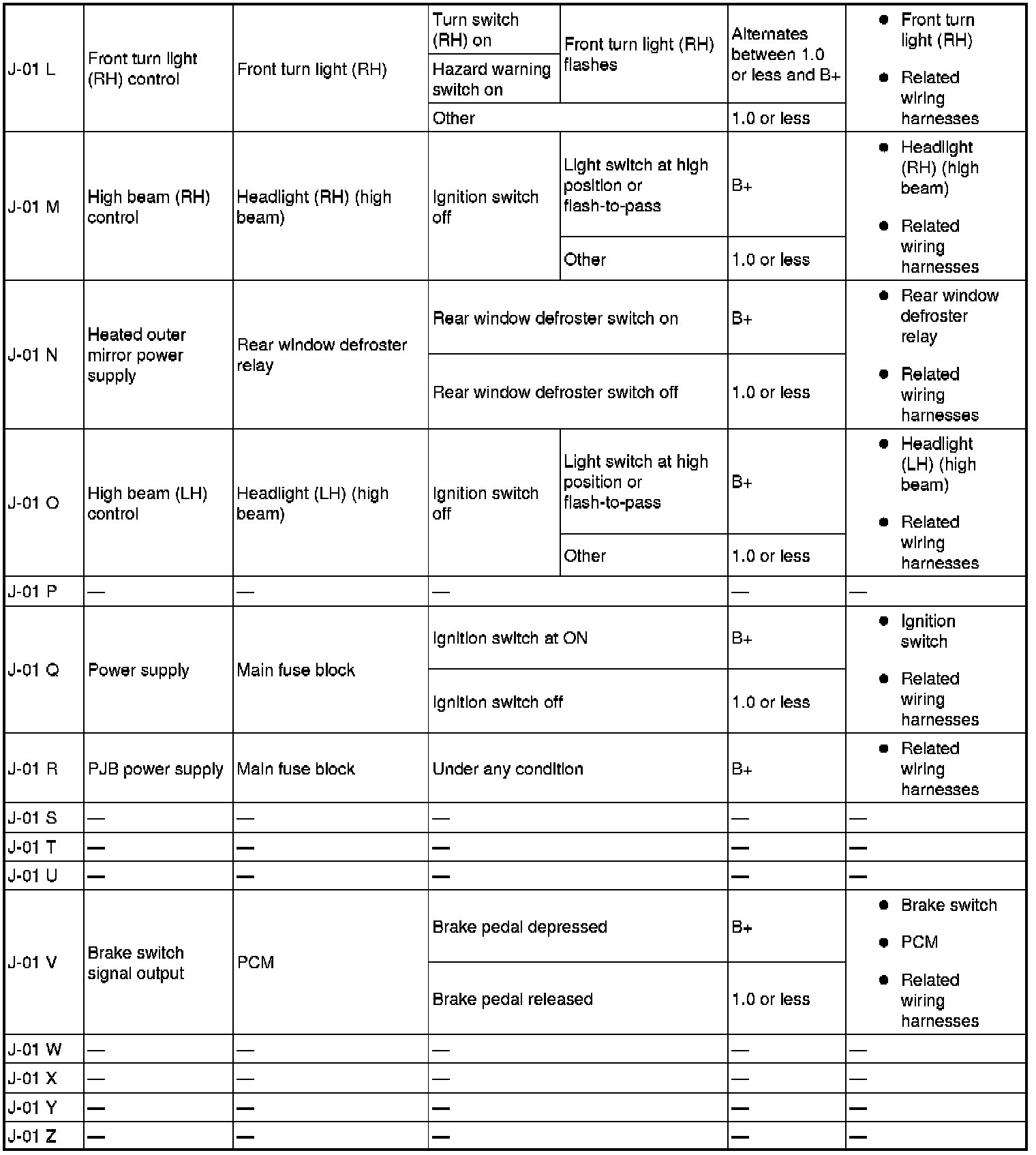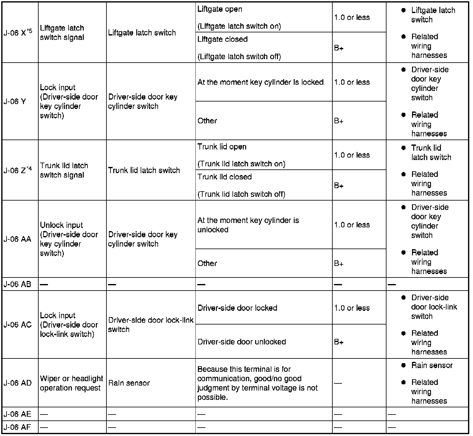 Home >> Mazda >> 2009 >> 3 L4-2.0L >> Repair and Diagnosis >> Body and Frame >> Body Control Systems >> Body Control Module >> Testing and Inspection >> Pinout Values and Diagnostic Parameters
