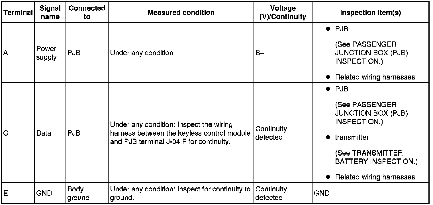 KEYLESS CONTROL MODULE INSPECTION