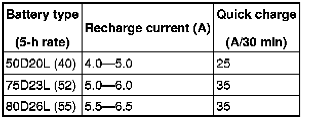 2. Connect a battery charger to the battery and adjust the charging current as follows. Standard specification