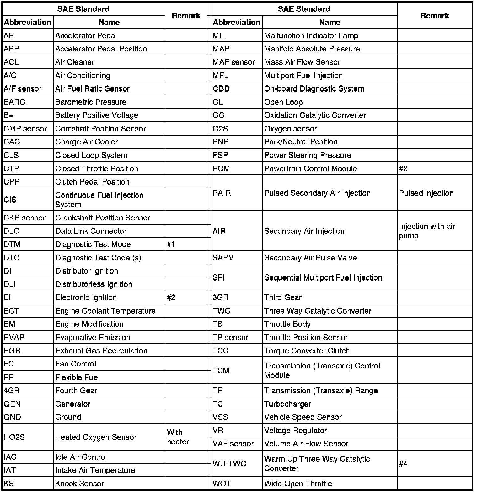 - In accordance with new regulations, SAE (Society of Automotive Engineers) standard names and abbreviations are now used in this information. The table below lists the names and abbreviations that have been used in Mazda service information up to now and their SAE equivalents.