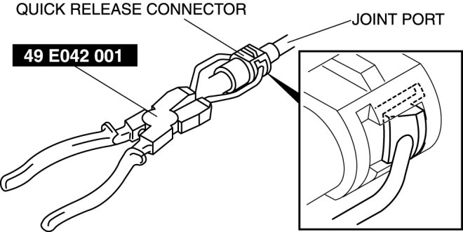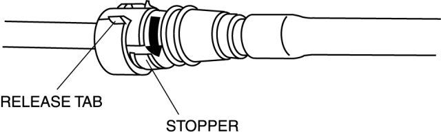 - A checker tab is integrated with the quick release connector for new evaporative hoses. Remove the checker tab from the quick release connector after the connector is completely engaged with the joint port.