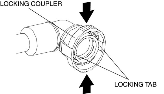 1. Squeeze the locking coupler until the locking tab opens and releases.