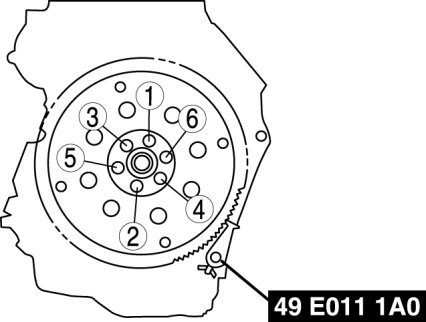 FN4A-ELTighten the drive plate mounting bolts in two or three steps in the order as shown in the figure.