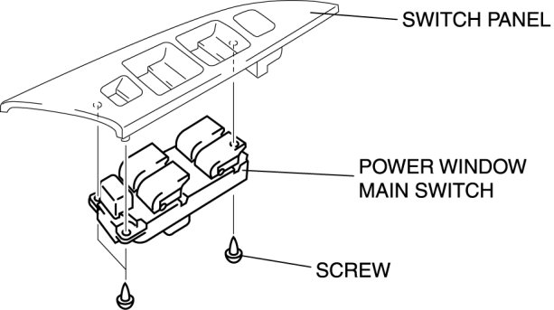 5. Remove the screws, then remove the power window main switch.