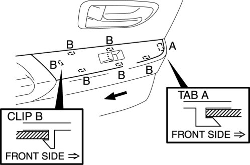 Home >> Mazda >> 2009 >> 3 L4-2.3L >> Repair and Diagnosis >> Windows and Glass >> Windows >> Power Window Switch >> Service and Repair >> Power Window Subswitch Removal/Installation