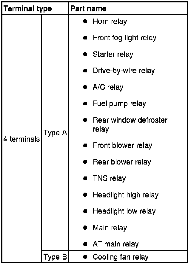 - If not as indicated in the table, replace the relay.