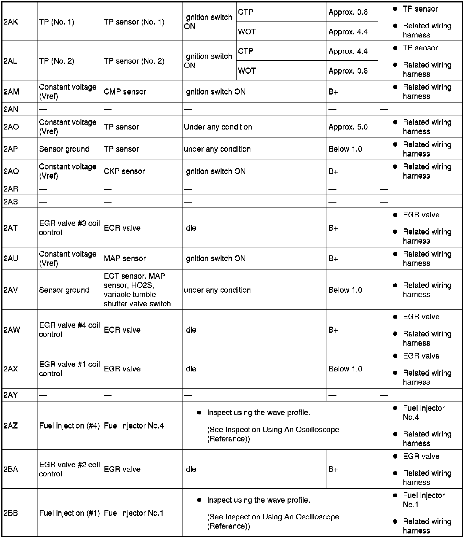 - Fuel Injection No.4: 2AZ (+)-body ground (-)