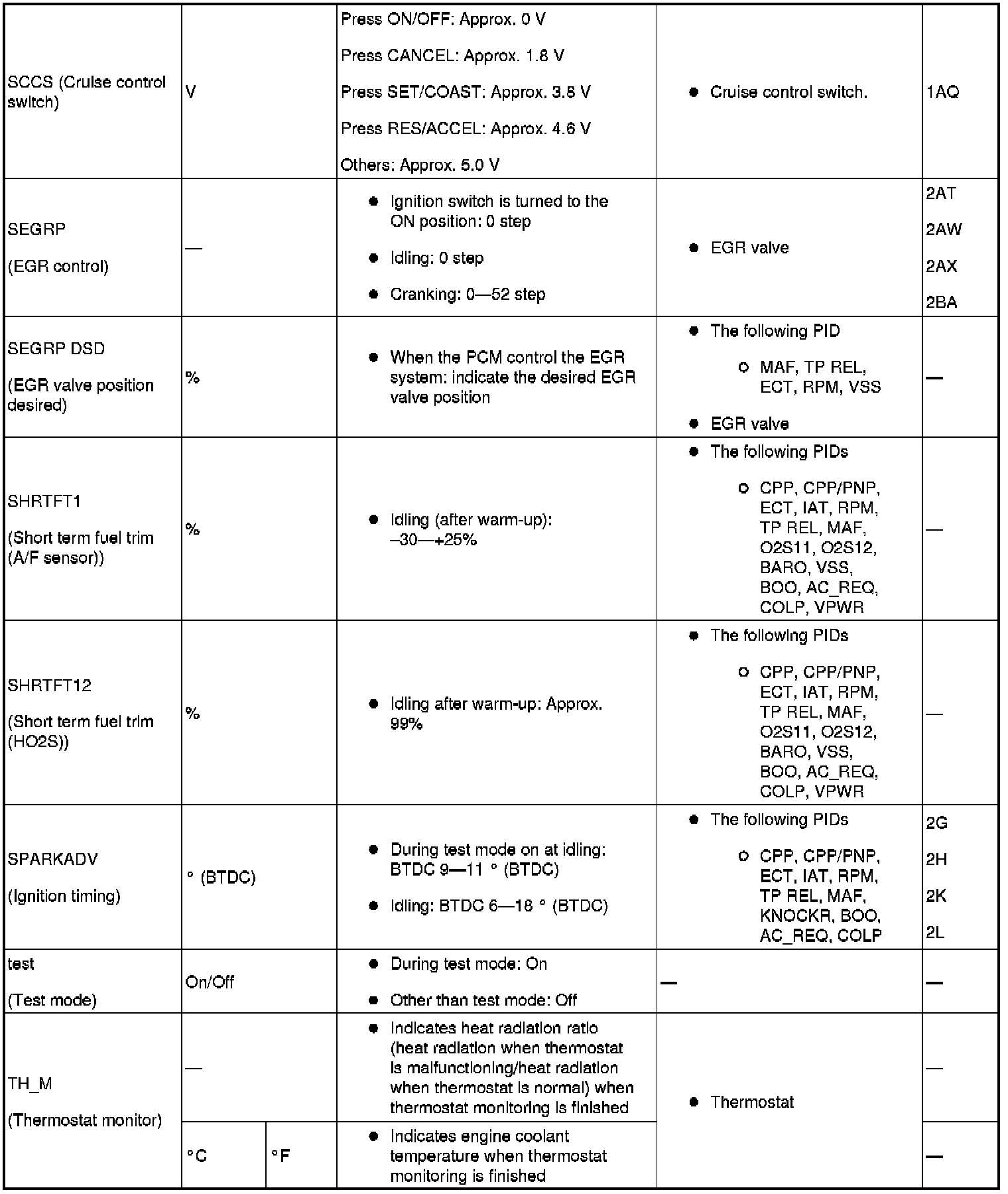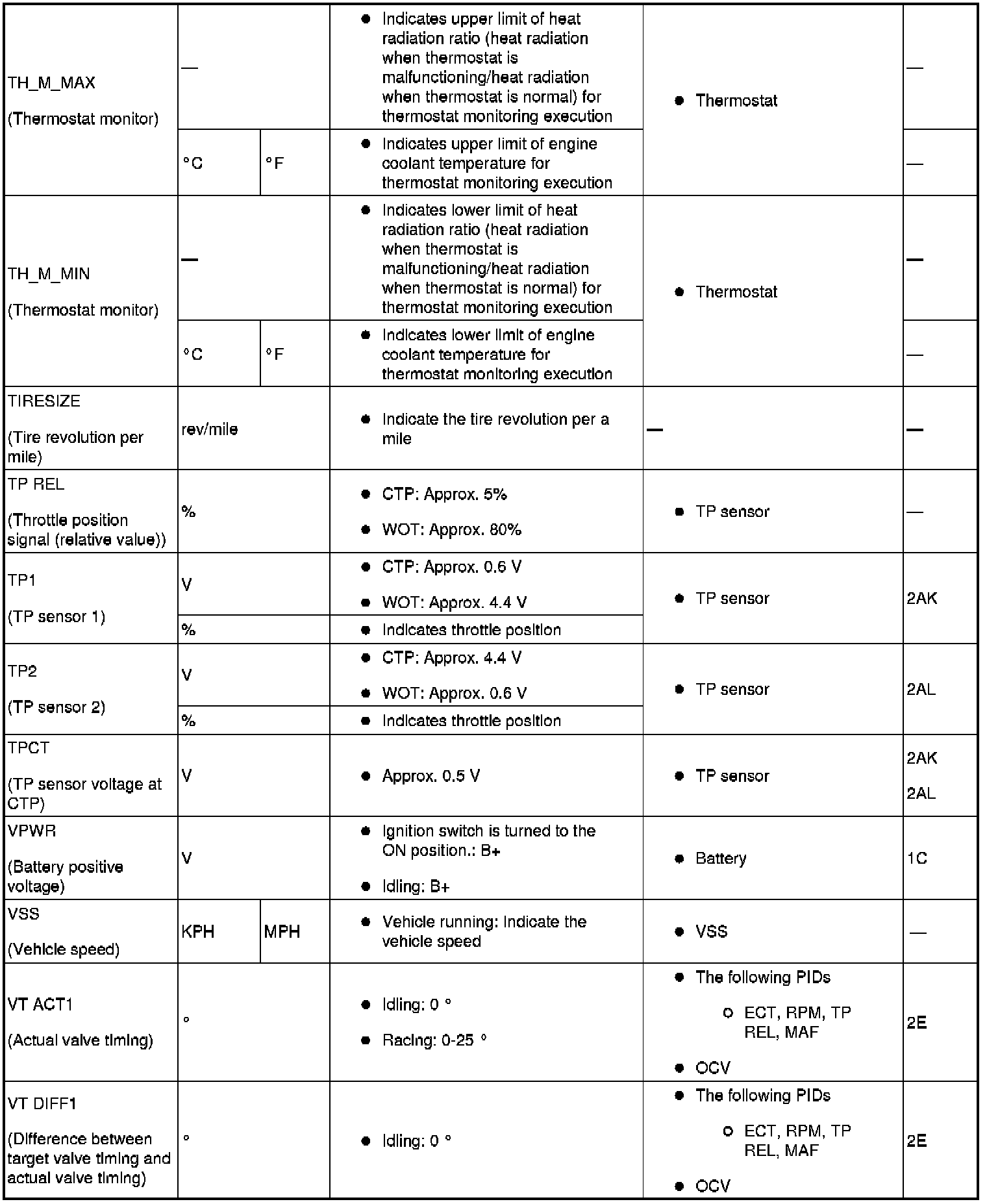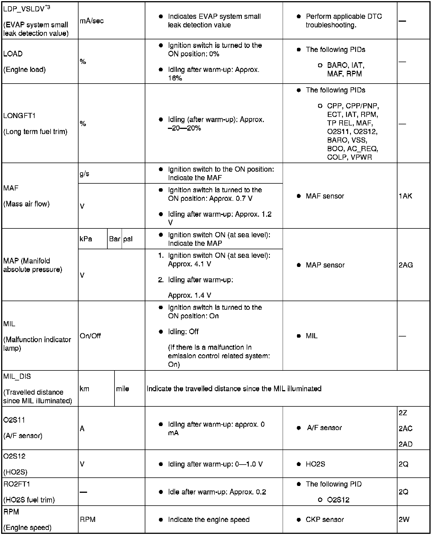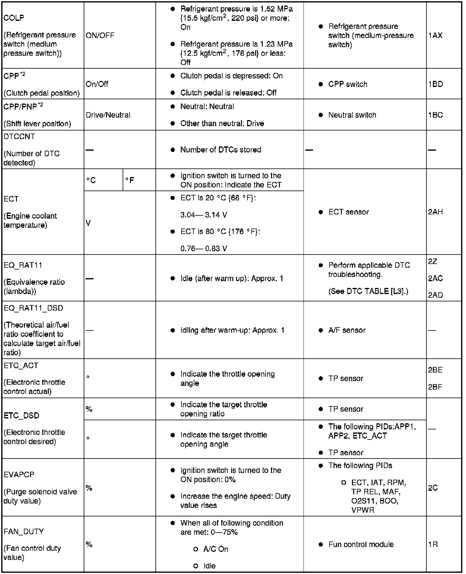 PID/DATA Monitor Table (Part 2):