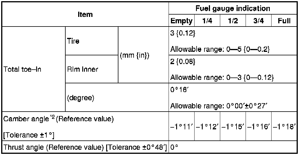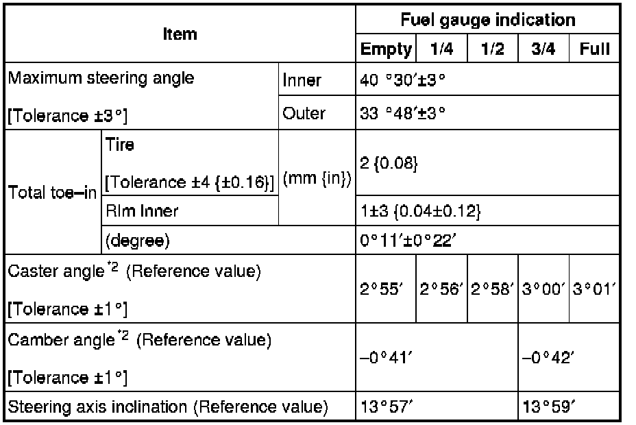FRONT WHEEL ALIGNMENTFront wheel alignment (Unloaded)*1