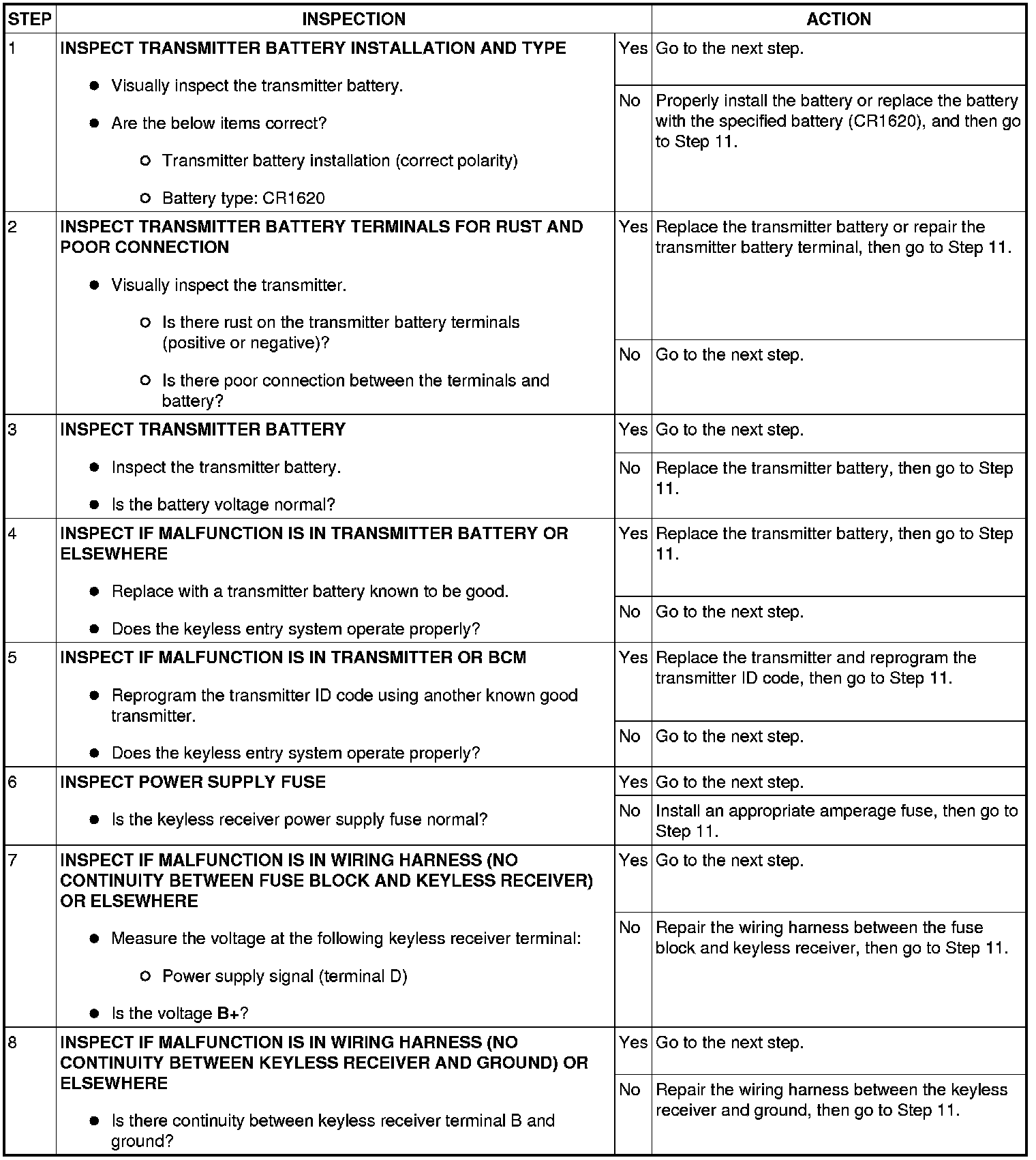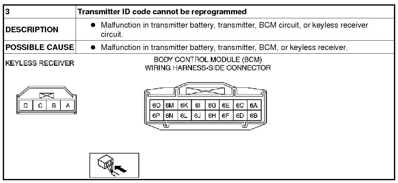 No.3 Transmitter ID Code Cannot Be Reprogrammed [Keyless Entry System]