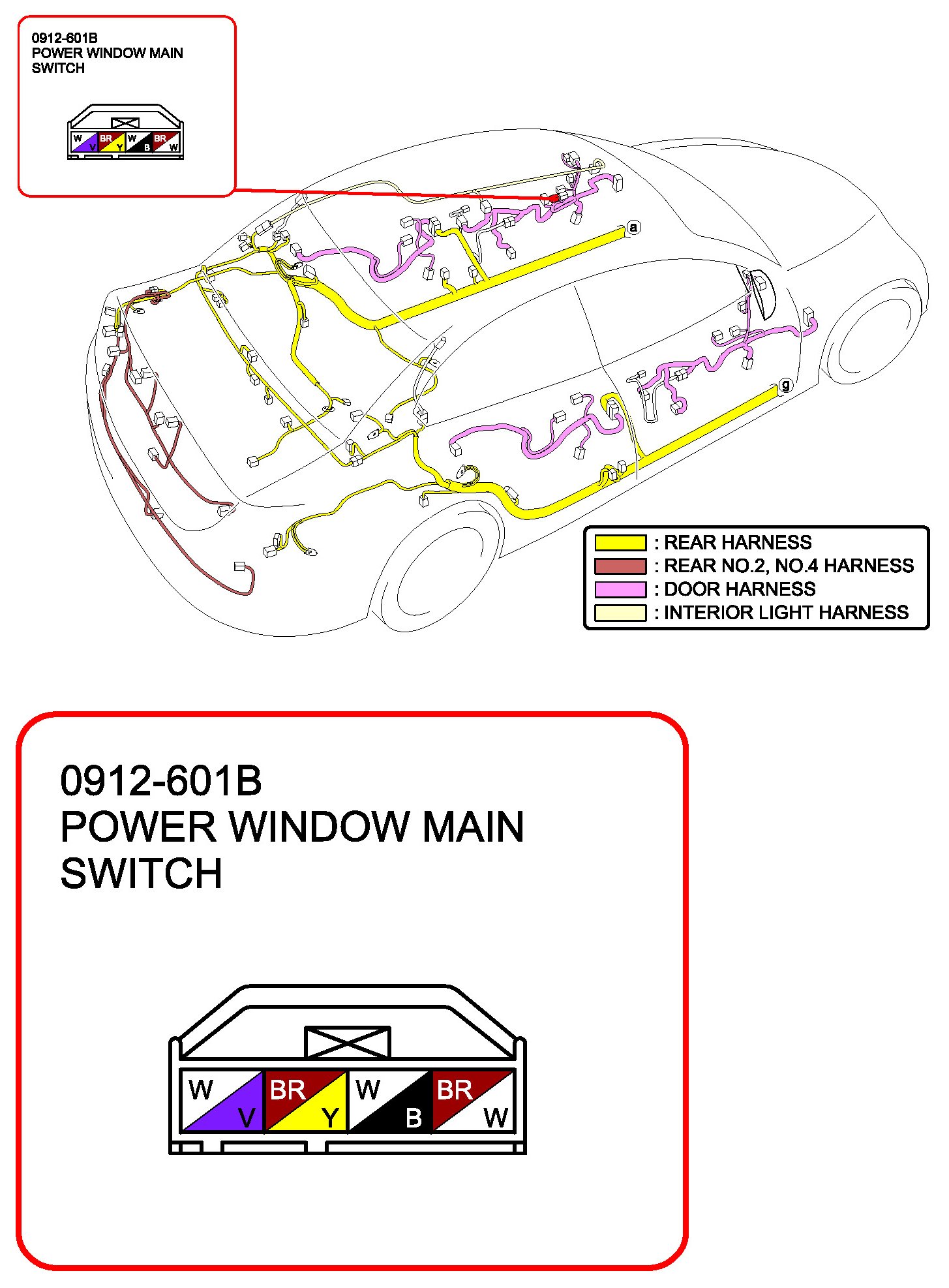 Power Window Main Switch (Without Retractable Outer Mirror):