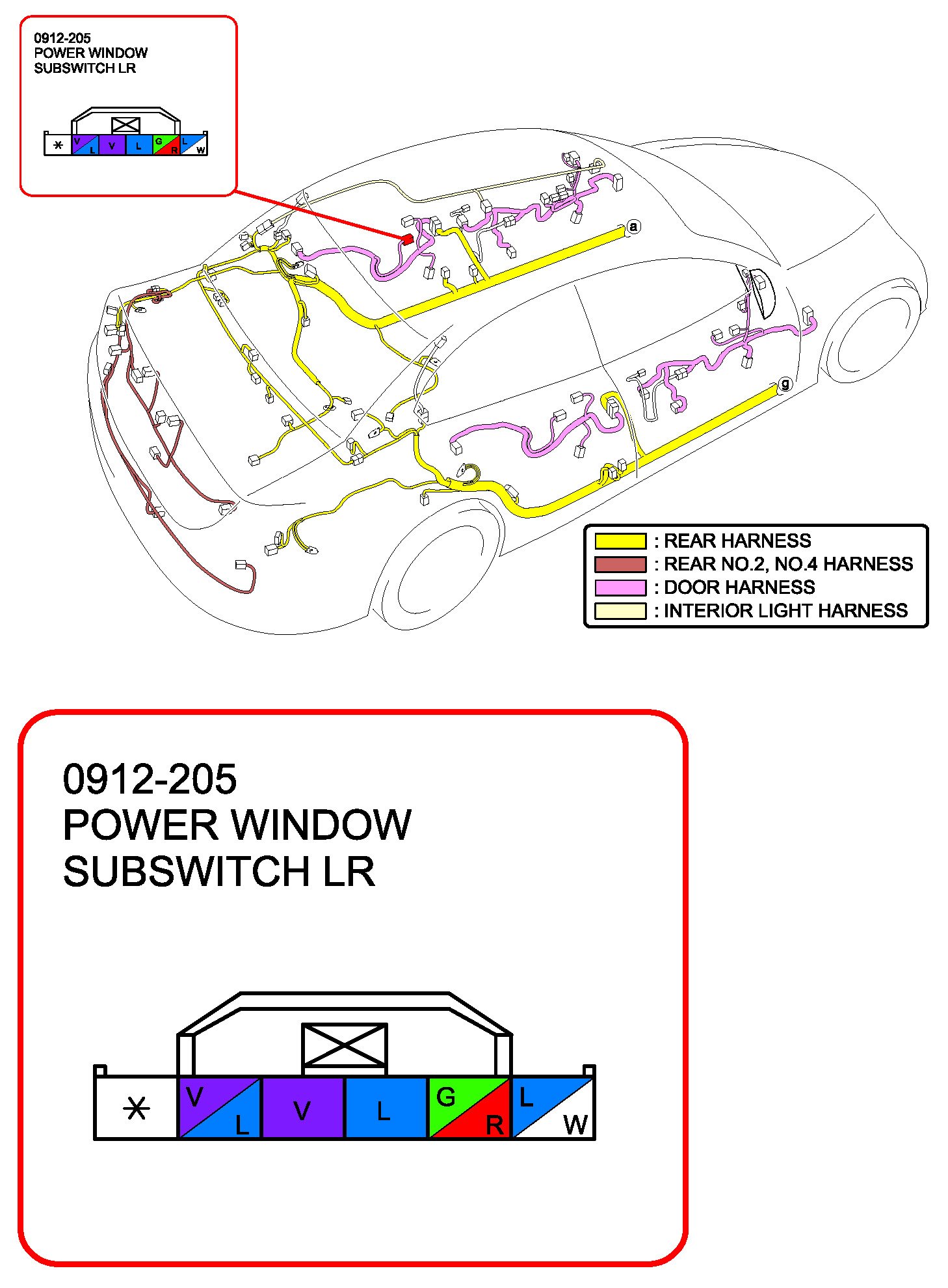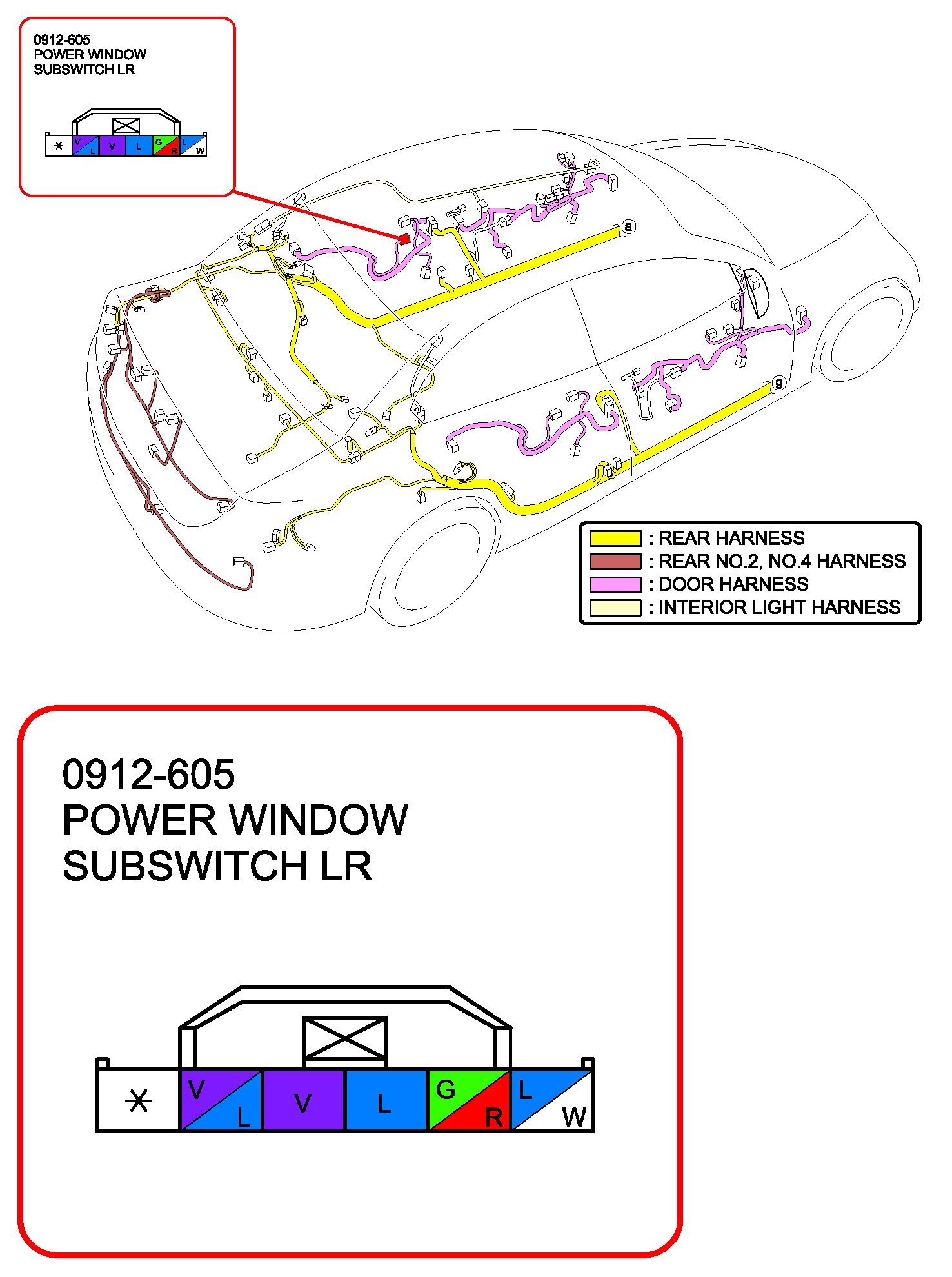 Power Window Subswitch LR (Without Retractable Outer Mirror):
