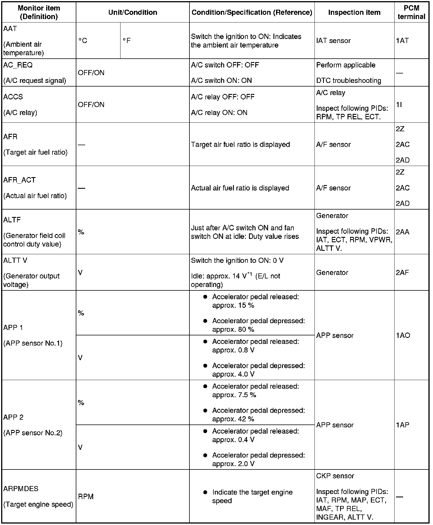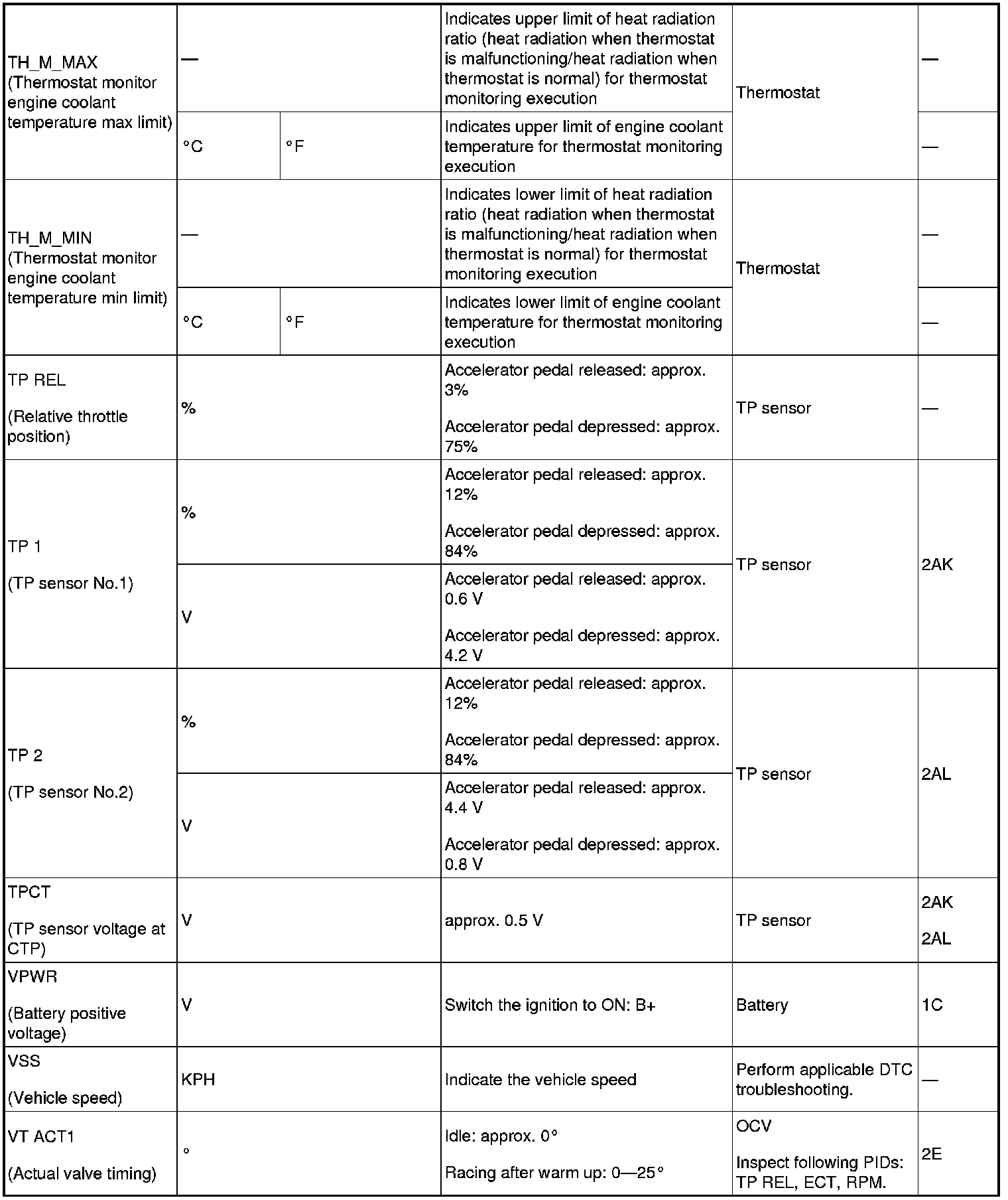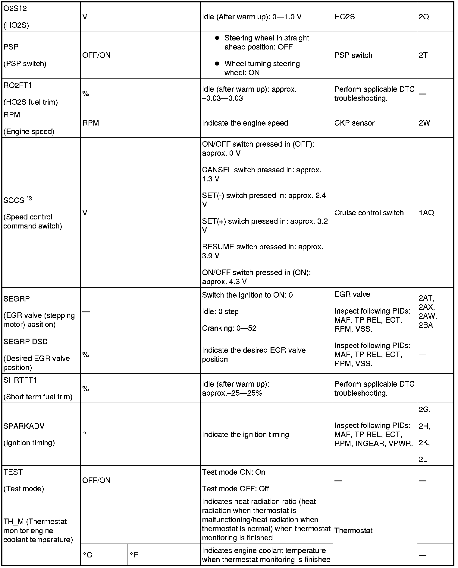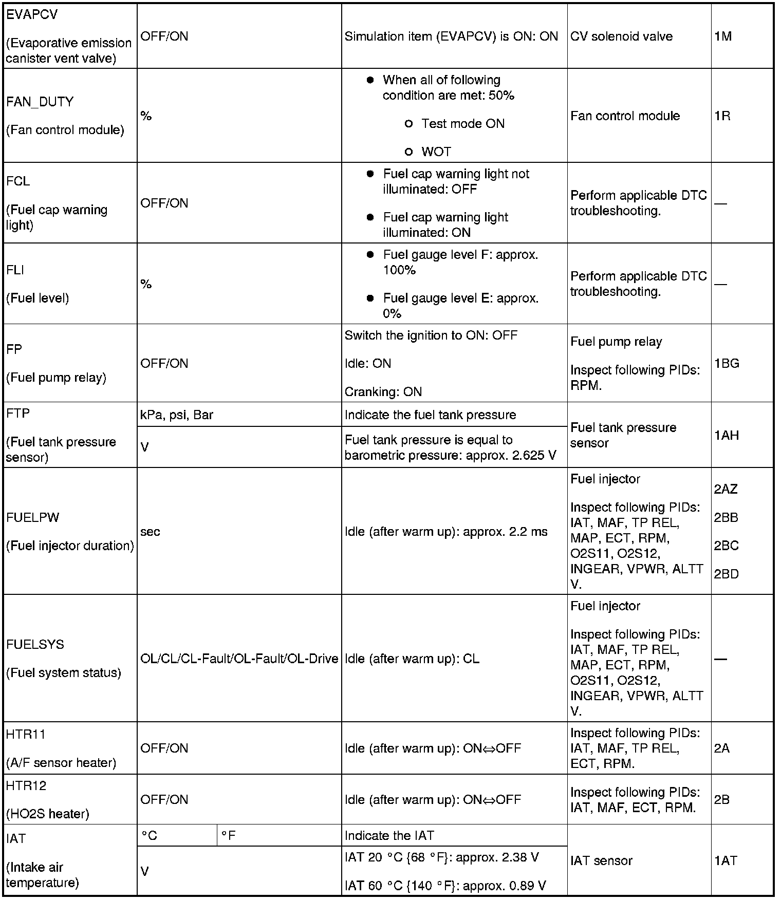 Home >> Mazda >> 2009 >> 6 L4-2.5L >> Repair and Diagnosis >> Powertrain Management >> Computers and Control Systems >> Relays and Modules - Computers and Control Systems >> Engine Control Module >> Testing and Inspection >> Pinout Values and Diagnostic Parameters >> PID/Data Monitor Tables