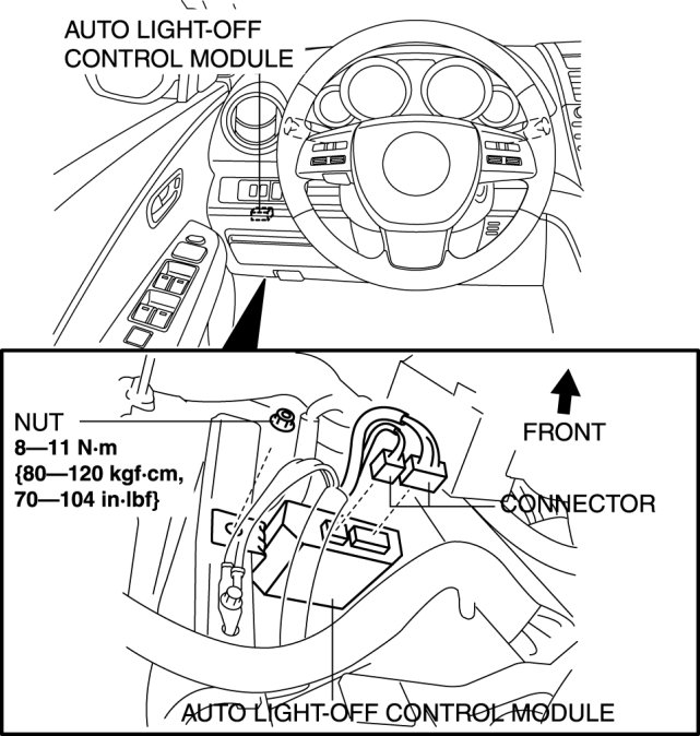 Home >> Mazda >> 2009 >> 6 L4-2.5L >> Repair and Diagnosis >> Relays and Modules >> Relays and Modules - Lighting and Horns >> Headlamp Control Module >> Service and Repair >> Auto Light-Off Control Module Removal/Installation
