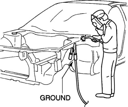 A vehicle has various electrical parts. To protect the parts from excessive current generated when welding, be sure to perform the following procedure.