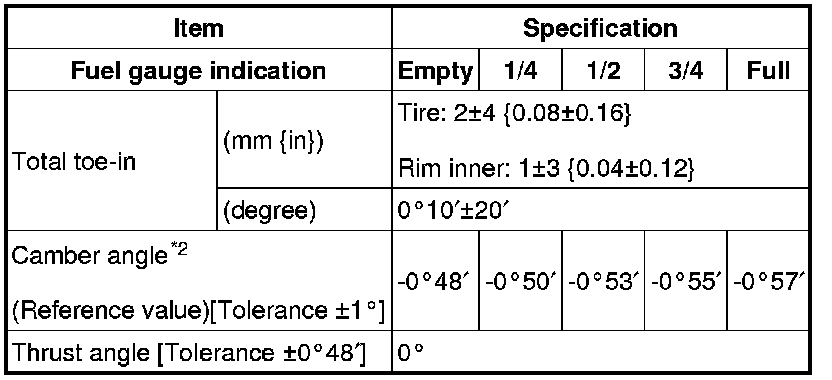 Front wheel alignmen (Unloaded)*1