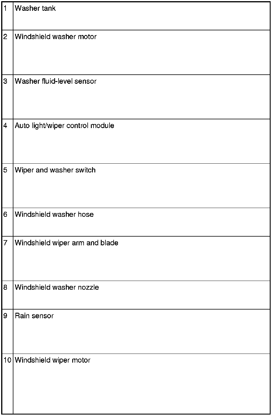 WIPER/WASHER SYSTEM LOCATION INDEX