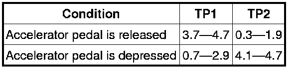 - Verify that the sensor output value is as indicated in the table below according to the condition of the accelerator pedal.